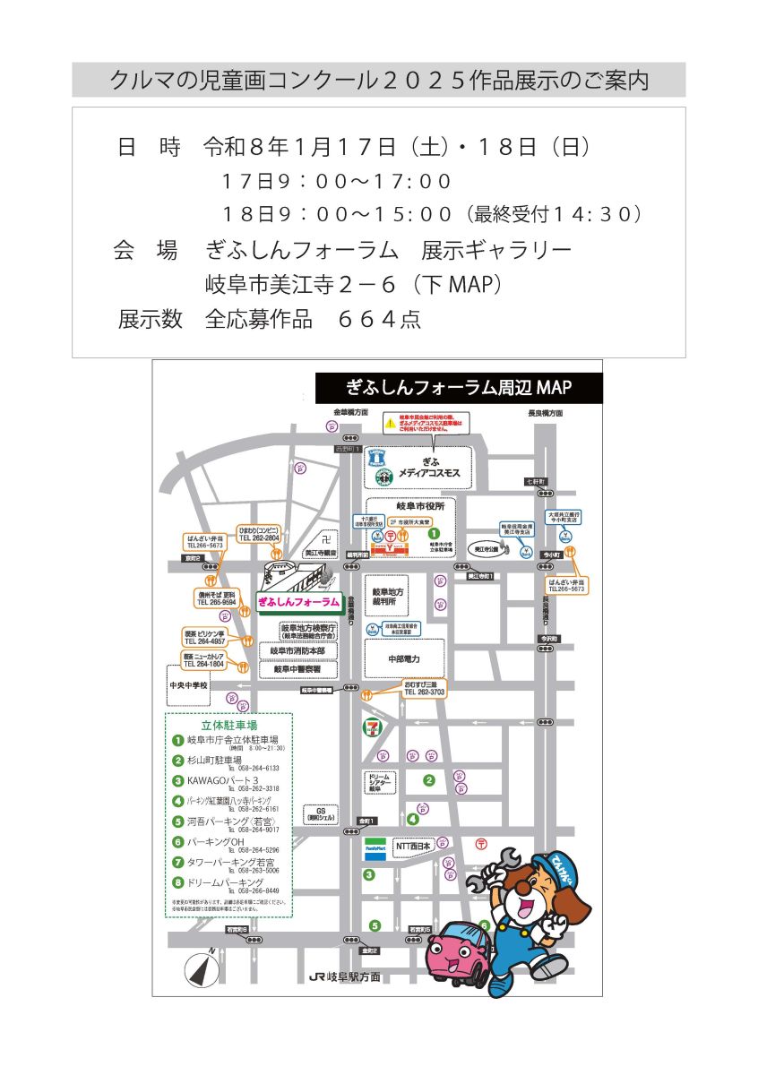 クルマの児童画コンクール2025応募作品(664作品)を展示します 観覧無料|一般社団法人 岐阜県自動車整備振興会